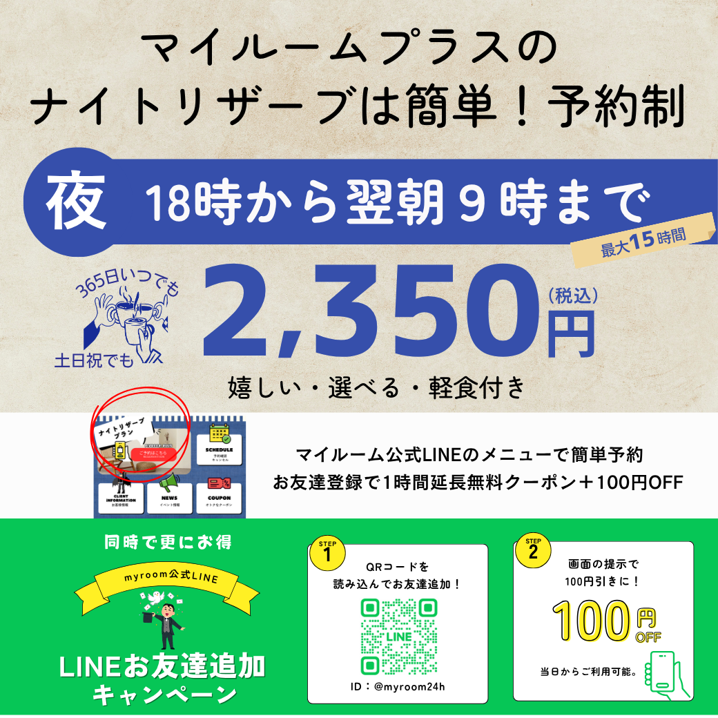 フリータイム利用が可能なマイルームプラスのナイトリザーブが登場!
